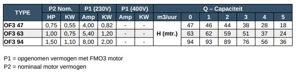 | m3/uur | 0,0 | 1 | 2 | 3 | 4 | 5 |