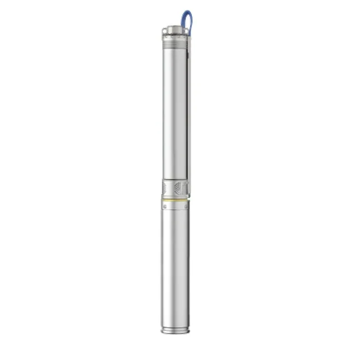 3″ bronpomp uitgevoerd in RVS 304 met Noryl waaiers. Geschikt voor installatie in bronnen met een minimum (binnen-)diameter van 78mm. Zandbestendig tot 150gr/m3, dus ook te gebruiken in bronnen die een heel klein beetje zand geven. Deze pomp is ideaal voor tuinberegening en de perfecte vervanger van 1pk centrifugaal pompen.
