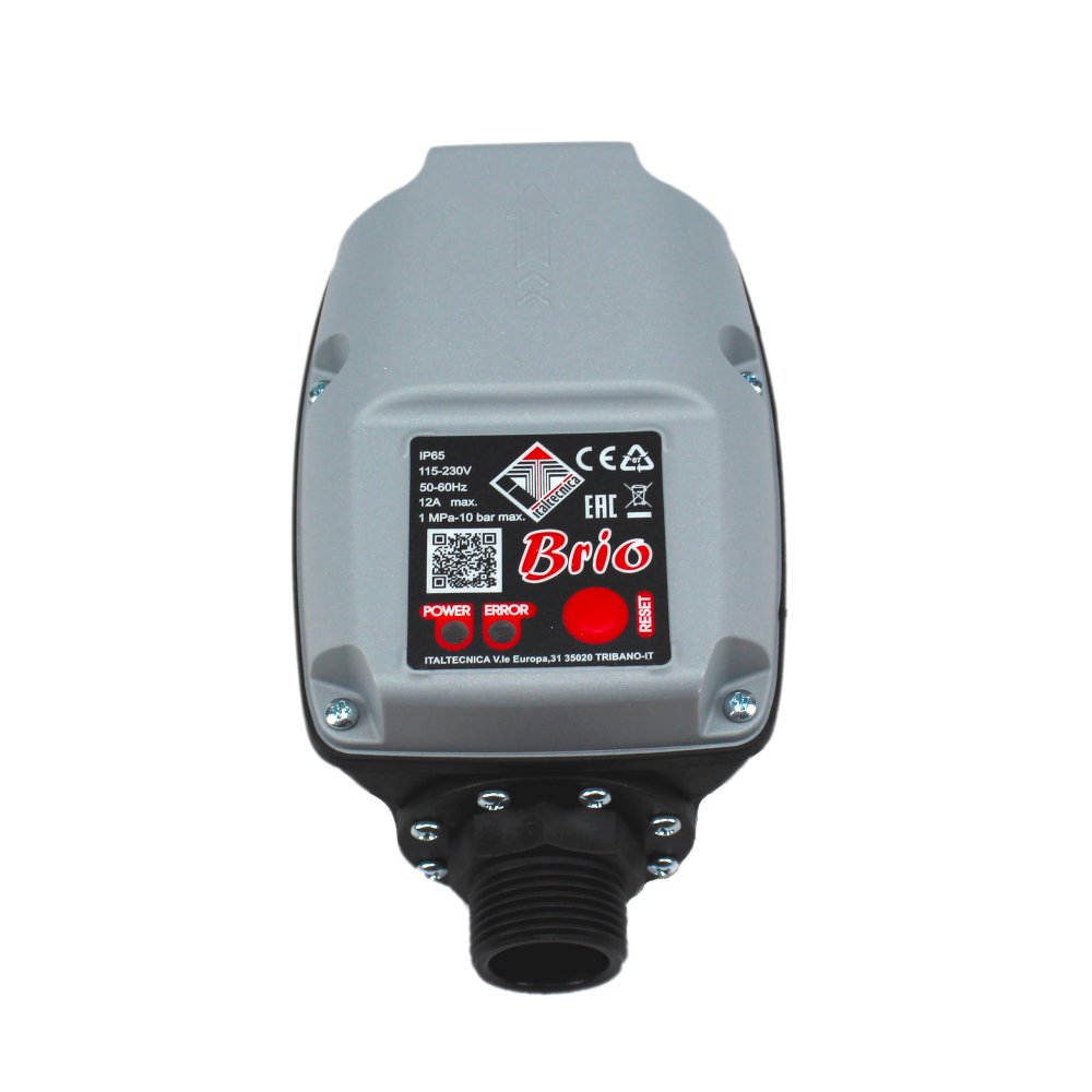 De Brio presscontrol is een doorstromingsschakelaar die de pomp volautomatisch in- of uitschakelt op basis van druk. M.a.w. wanneer een kraan of klep geopend wordt en er een drukverschil ontstaat in de persleiding wordt uw pomp ingeschakeld en zodra er een kraan/klep gesloten wordt, wordt uw pomp weer uitgeschakeld.
